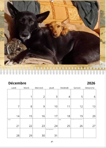 Ce grand calendrier mural en format A4 met à l’honneur nos podencos adoptés, dans des photos pleines de vie et de tendresse.