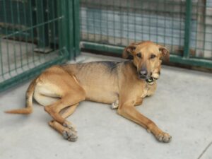 Commentaire : Kimi est une jeune podenca trouvée dans la rue , elle était le sujet d’un gros sos et Consuelo est allée la récupérer. Maigre et affamée , en piteux état , elle a réussie a l’attraper. C’est une chienne un peu timide mais qui pourrait faire confiance facilement avec une personne douce et patiente. Elle mérite un regard bien qu’a ce moment précis , elle n’est pas en état mais elle deviendra une belle podenca une fois qu’elle aura pu se poser petit à petit. Elle s’entend parfaitement avec tous les autres chiens.