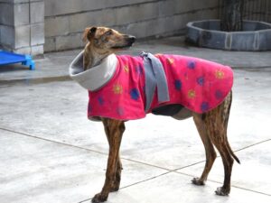 La toute petite Lina la seule non lévrier adoptée se fait attaquée au refuge et elle attend son transport à l’infirmerie.