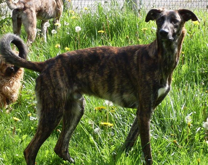 Argos a été trouvé tremblant de froid avec ses frères et soeurs dans un trou de terre que leur mère avait fait. Ils étaient affamés et leur mère a été mourante. Très amaigrie comme ses frères, Argos s est trouvée rapidement en famille d’accueil en région d’Albacète. Leur mère, Due, est excessivement craintive. Elle a par la suite rejetée ses petits.