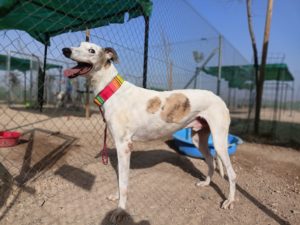 Atheo a été trouvé errant dans cordoue et il a passé 3 mois en fourriere car il était pucé. Son propriétaire ne l ayant pas réclamé, il a pu entrer au refuge et mis à l adoption. Atheo n’est pas craintif, juste un peu timide au premier contact, mais il remue vite la queue et vient au contact pour des caresses. Il est calme, pas dominant et s ‘entend bien avec les autres chiens.