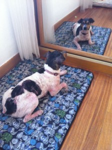 ça c’est une chienne petite par la taille, grande par le courage! bon courage toute belle, je te souhaite vite une famille