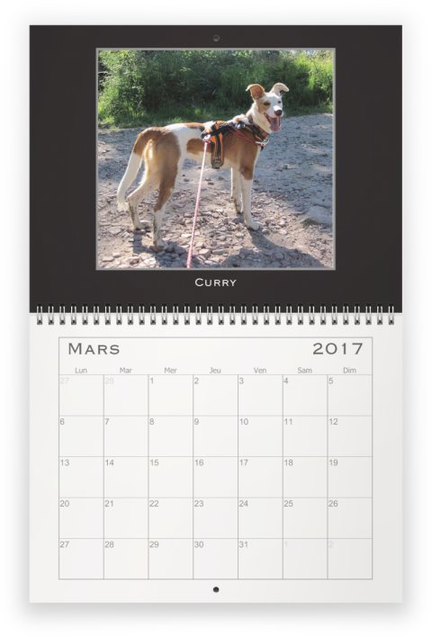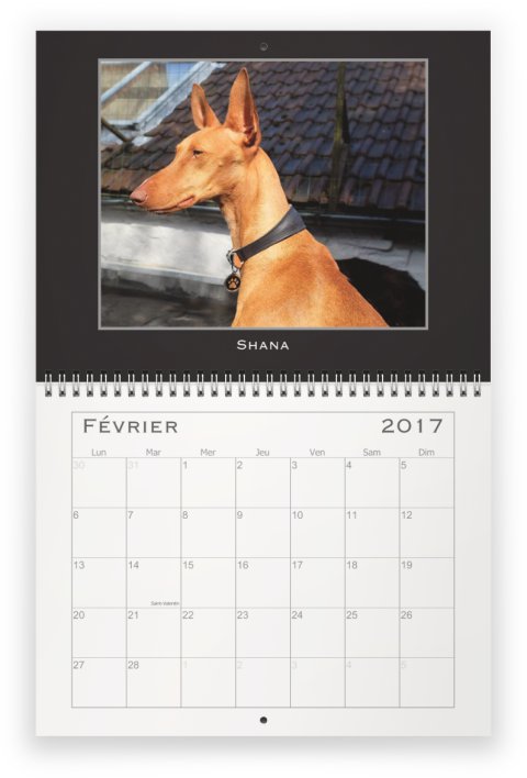 Calendrier Podencos : modèle bureau 12 euros et modèle Mural 16 euros