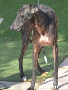 Orion est le 2e galgo que nous avons pris en charge sur Bailen. Il est arrivé à la pension très inquiet, il a du vivre des choses bien plus difficiles. De plus, il est positif à la leishmaniose, et il va tout de suite être mis sous allopurinol et milteforan car il a un taux un peu élevé pour le moment, du fait qu’il n a jamais été soigné. Si le chasseur ne les avait pas donné à la benevole qui nous a contacté, il serait surement mort à terme…