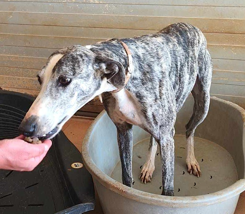 Commentaires : Santa était une galga abandonnée dans la rue que Consuelo essayait d’attraper sans résultat. Finalement , la persévérance à porter ces fruits sachant que Consuelo ne peut pas les prendre dans son refuge les galgos au risque de vol, elle savait que derrière ce sauvetage , il fallait une solution. Et nous avons répondu oui comme toujours à Consuelo qui est une personne qui se bat sur place depuis des années et mérite de l’aide.