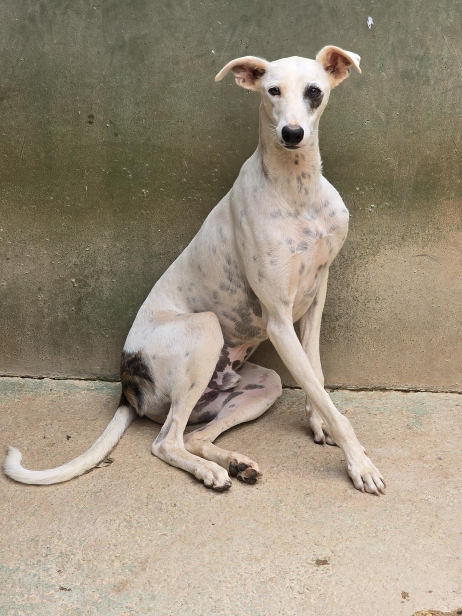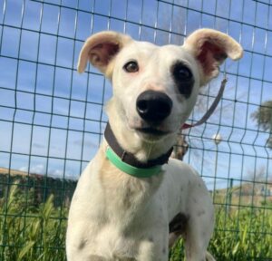 Santa a 7 ans , elle est plutôt timide et nous l’avons appelé ainsi pour la période de Noël qui correspond à son sauvetage. C’est une galga merveilleuse qui ne demande que les carresses d’un humain à qui elle fait confiance timidement.