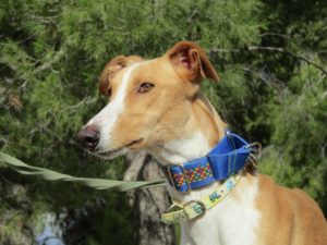 Mikonos est sortie de la perrera de Lucena. Il est sociable et sympathique. Il est très affectueux, il n’a pas peur et il s’approche toujours de tout le monde pour lui demander des caresses. Il est joueur et a un peu plus d’énergie que la moyenne, mais ce n’est pas un lévrier excessivement actif. Si vous ne voulez pas jouer avec lui, il comprend vite qu’il ne doit pas vous déranger et il reste à vos côtés en attendant les caresses. Avec les autres chiens il est très gentil, sociable et soumis. Facile, un chien équilibré et sympathique adapté aux débutants, peu importe seul ou avec d’autres chiens.