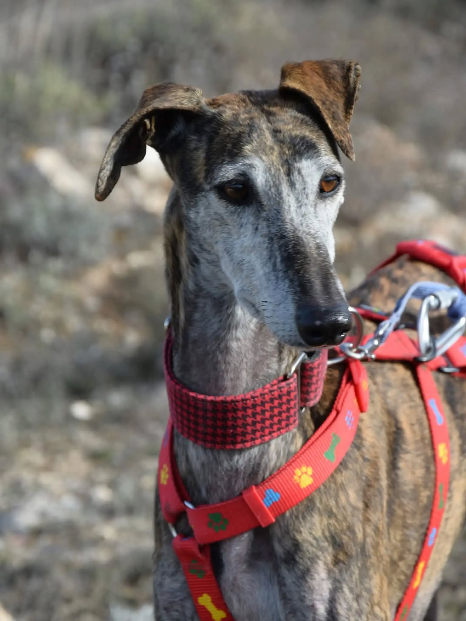 Il est super sympa, tendre et câlin, il aime les gens et ne vous lâche plus pour avoir des caresses, un vrai pot de glue ! C’est un galgo parfait pour une première adoption (ou pas !)