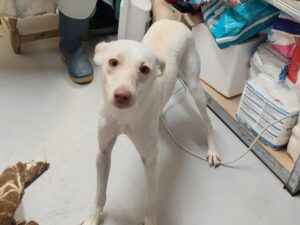 Commentaires : L’histoire de Toffee est très difficile. Lors d’un transport pour une de nos chienne dans un autre refuge à Alméria , sur la route Laura a remarqué deux podencos qui trainaient depuis un moment déjà sans jamais réusssir à les attraper.Ce jour là lors du transport de Imani , elle a réussi à en attraper un Toffee malheureusement l’autre s’est fait percuter par un véhicule et il est mort.