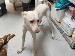 Commentaire : Kimi est une jeune podenca trouvée dans la rue , elle était le sujet d’un gros sos et Consuelo est allée la récupérer. Maigre et affamée , en piteux état , elle a réussie a l’attraper. C’est une chienne un peu timide mais qui pourrait faire confiance facilement avec une personne douce et patiente. Elle mérite un regard bien qu’a ce moment précis , elle n’est pas en état mais elle deviendra une belle podenca une fois qu’elle aura pu se poser petit à petit. Elle s’entend parfaitement avec tous les autres chiens.