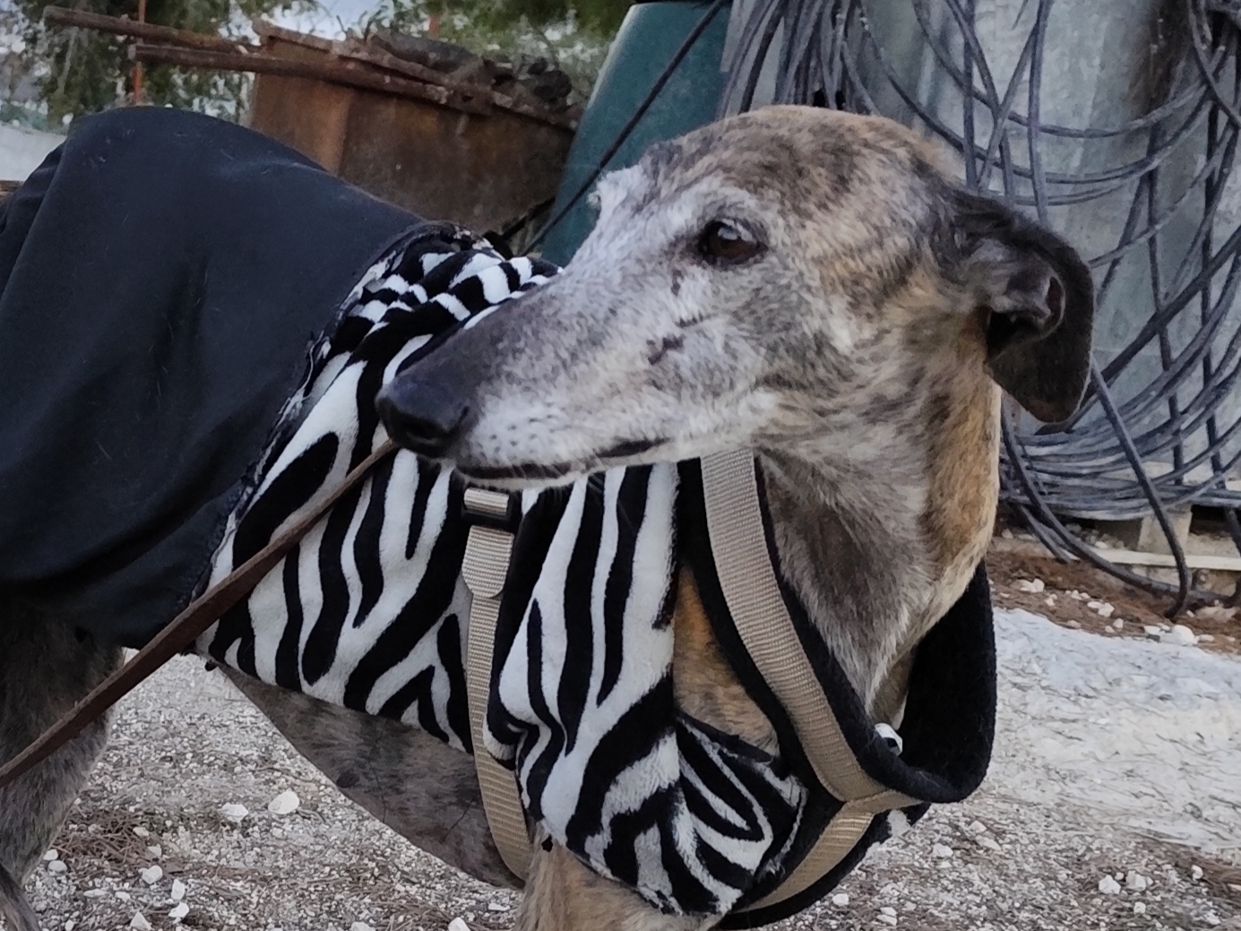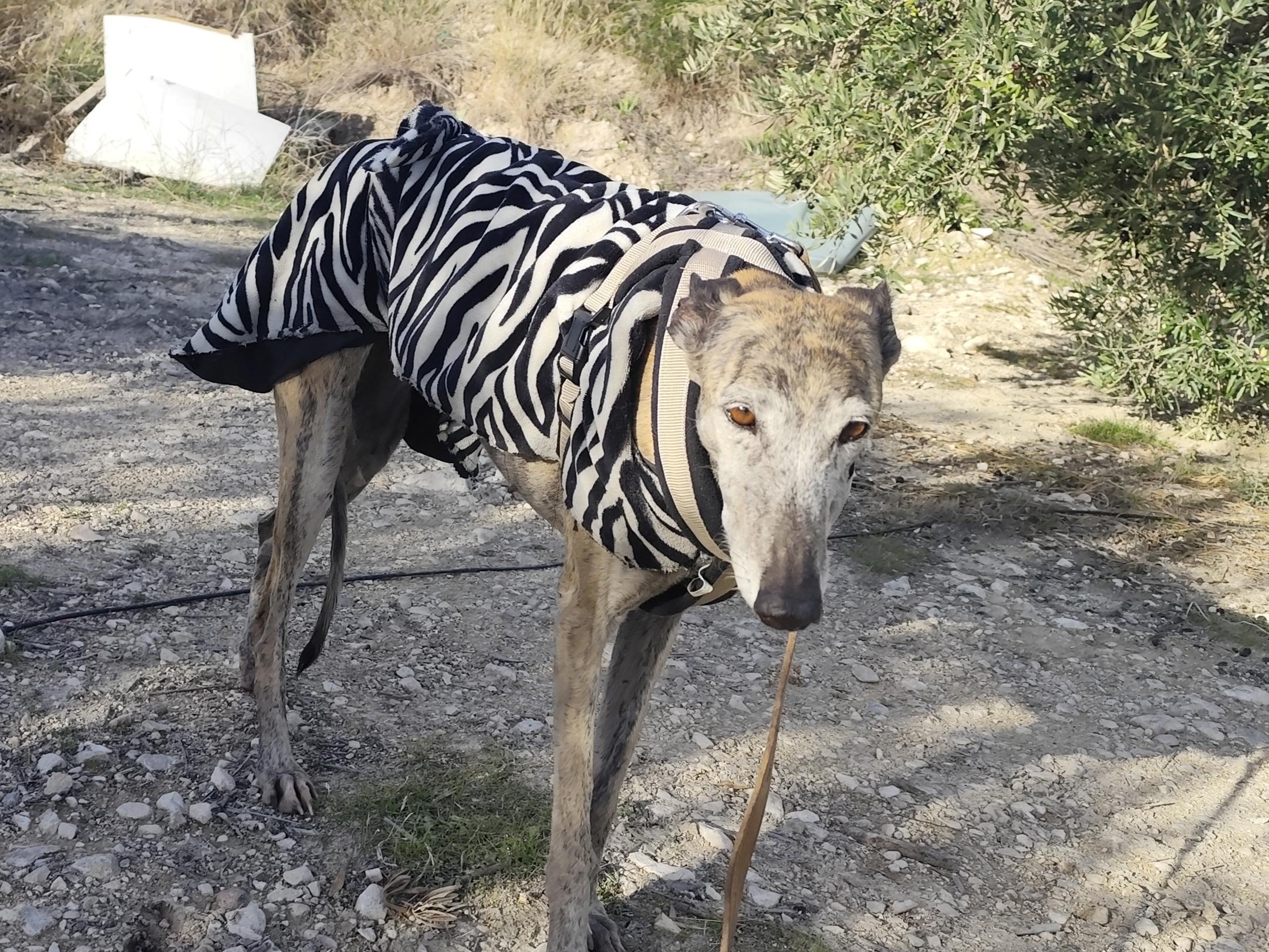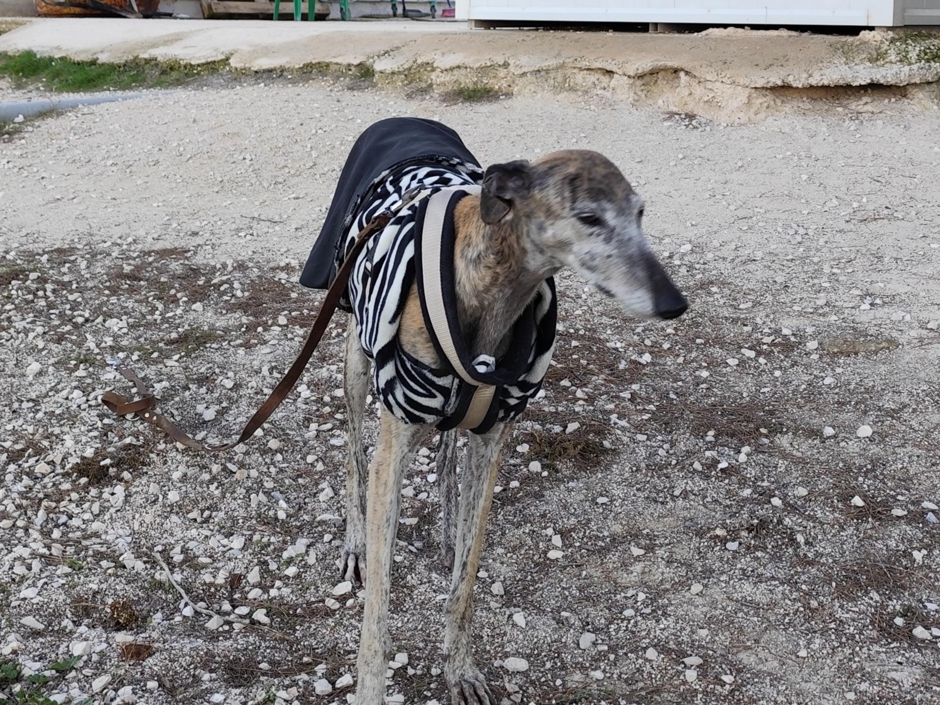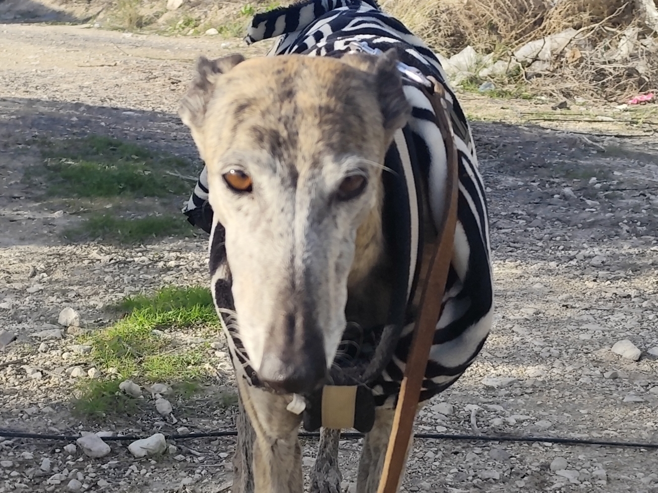 Santa a 7 ans , elle est plutôt timide et nous l’avons appelé ainsi pour la période de Noël qui correspond à son sauvetage. C’est une galga merveilleuse qui ne demande que les carresses d’un humain à qui elle fait confiance timidement.
