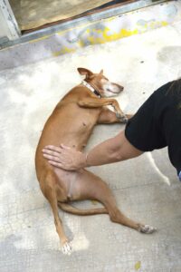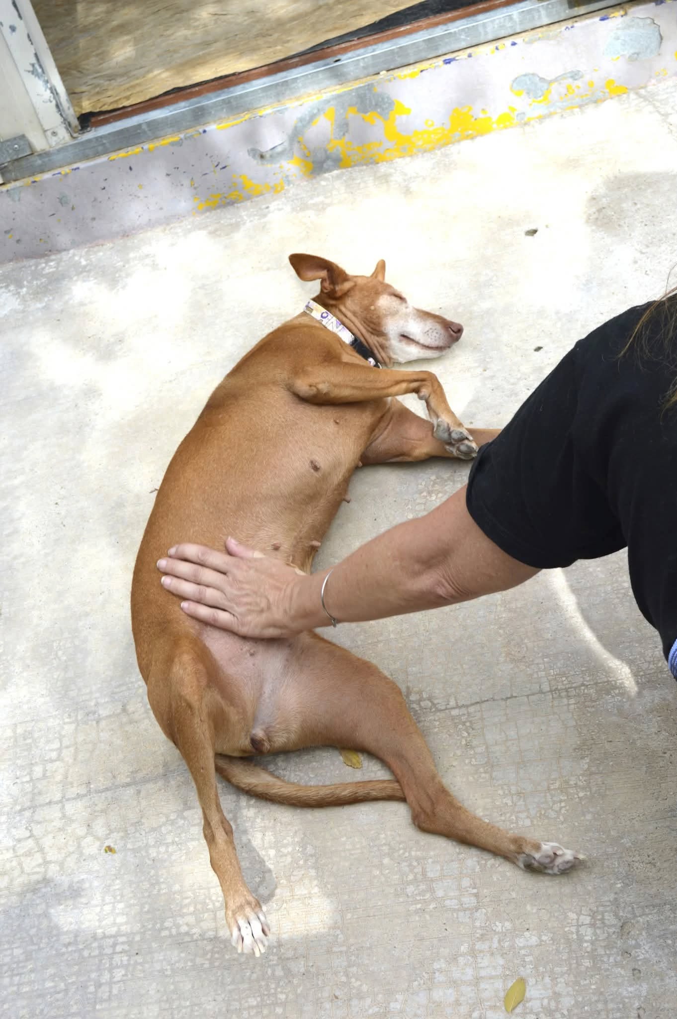 Toffee est d’une maigreur impressionnante mais il ne garde pas de rancoeur sur les mauvais traitements qu’il a reçu toute sa petite vie. La région de Alméria est le lot de ces pauvres podencos en masse trainant dans les rues maltraités et abandonnés dont les associations ne veulent pas.