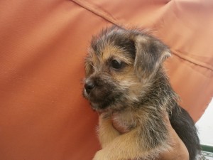 Deliss avait été trouvé abandonné dans la rue avec son frere et sa soeur, les autres chiots étaient morts. Consuelo les a pris dans son refuge. Deliss est un peu craintive mais sociable avec les chiens